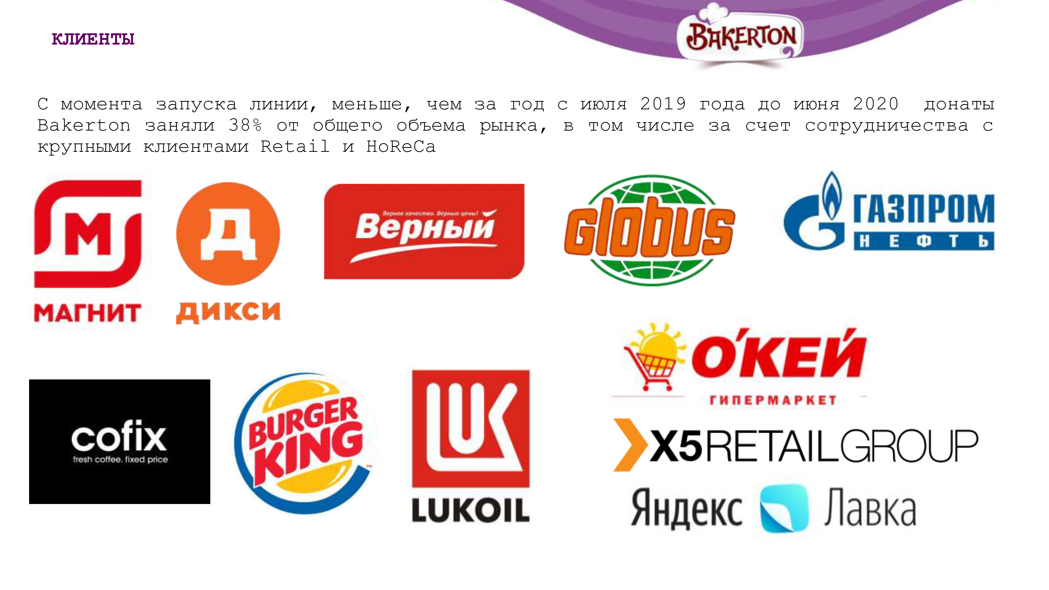 Производство расположено в экологически чистом Ногинском районе Восточного Подмосковья (в 35 км от Москвы). При производстве тортов ручной труд не используется, благодаря чему продукт имеет высокий уровень стандартности. На площадке используется запатентованная автоматизированная система нанесения бордюрной ленты на кондитерское изделие, расположенное на конвейерной ленте.